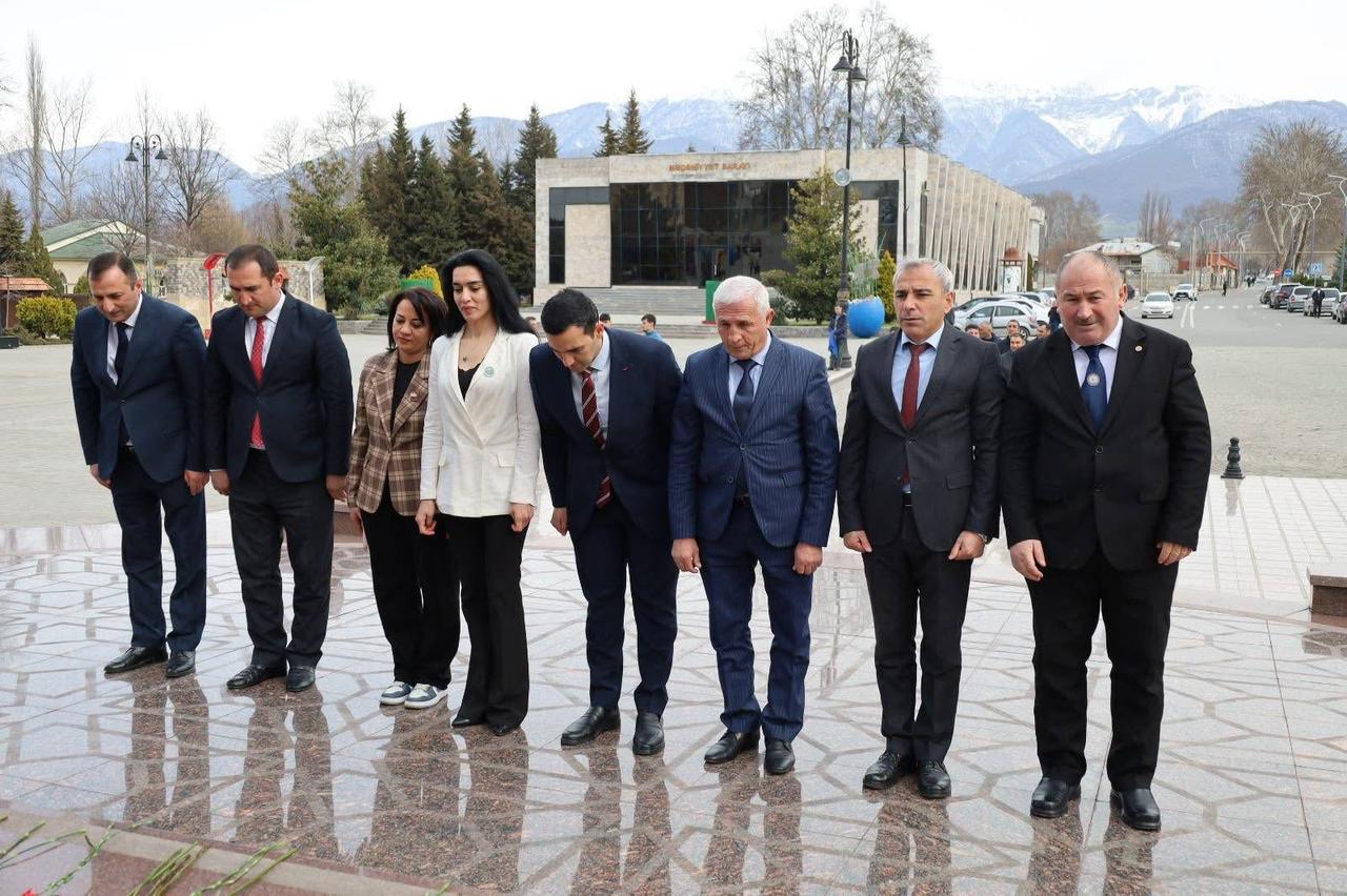 Əvvəlcə rayon ictimaiyyətinin nümayəndələri Ulu Öndər Heydər Əliyevin abidəsini ziyarət edərək önünə gül dəstələri düzüb, dahi şəxsiyyətin əziz xatirəsini dərin ehtiramla yad ediblər.