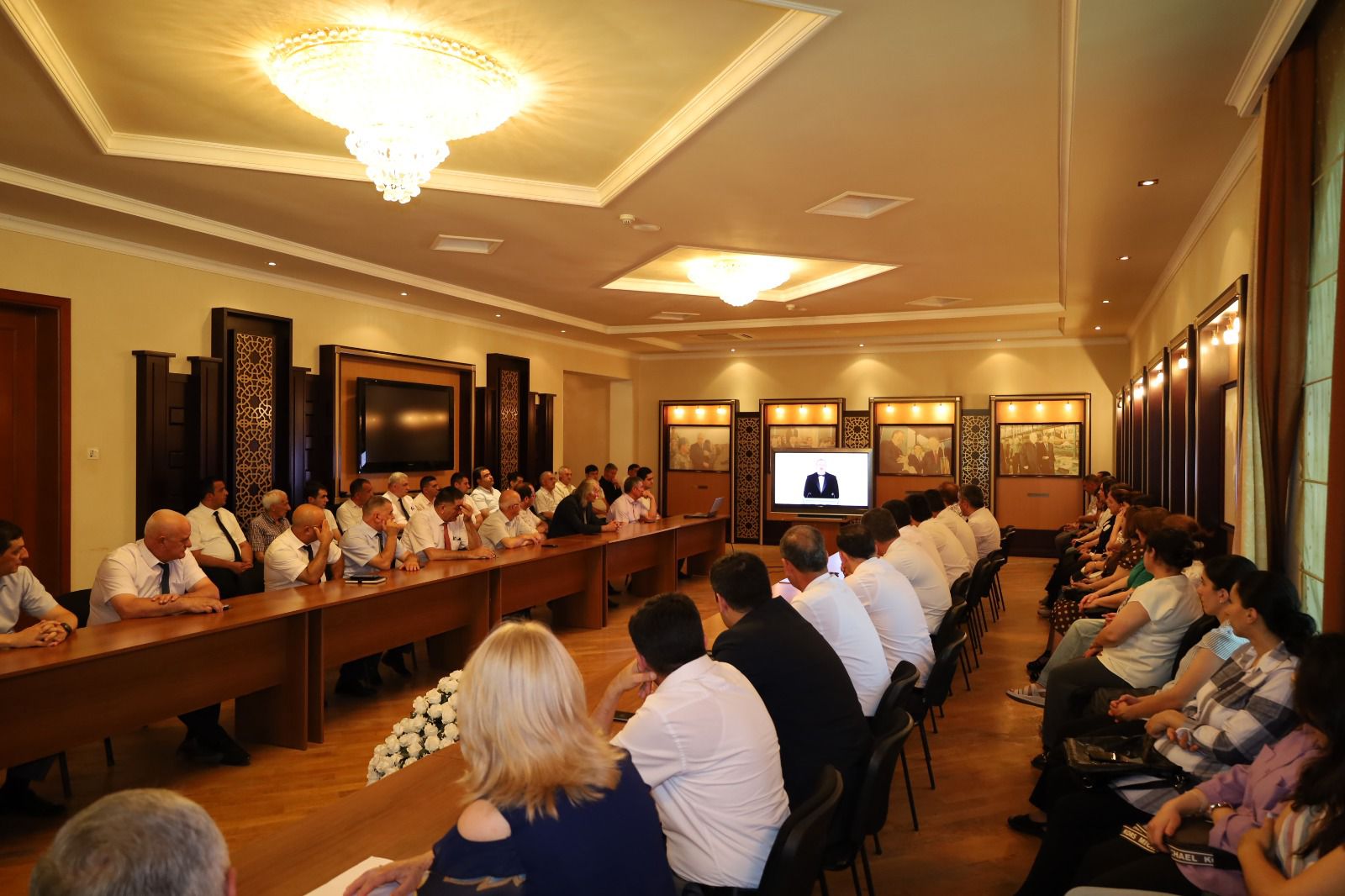 Tədbir iştirakçıları Ulu Öndər Heydər Əliyevin və torpaqlarımızın azadlığı uğrunda canlarından keçən şəhidlərimizin xatirəsi bir dəqiqəlik sükutla yad edib, Ümummilli Liderin həyat və fəaliyətindən bəhs edən filmə baxıblar.