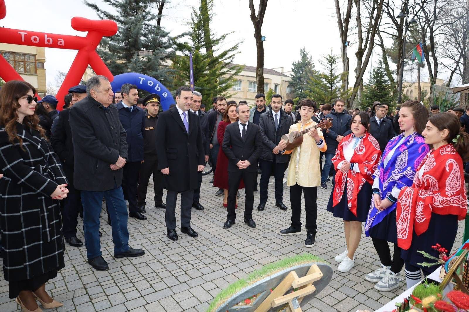 Sərgilərdə milli sənətkarlıq nümunələri, ev sənətkarlarının əl işləri, qədim mətbəximizə aid təamlar nümayiş olundu, folklor kollektivlərinin çıxışları, xanəndələrin və müğənnilərin ifaları tədbirə xüsusi rəng qatdı. Bayram tonqalı ətrafında toplaşan insanlar Novruzun birlik, bərəkət və yenilənmə rəmzi olduğunu bir daha nümayiş etdirdilər.